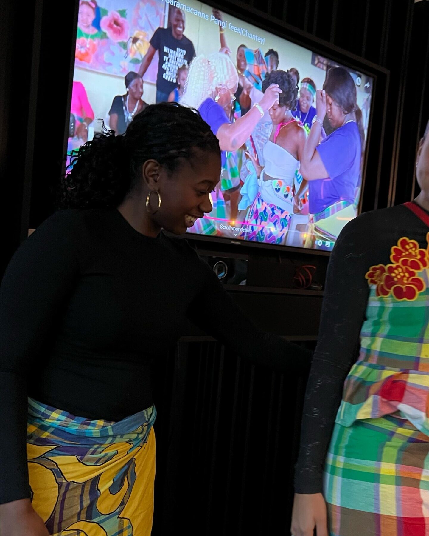 Het was weer een multi-zintuigelijke reis waarbij de deelnemers konden genieten van de veelzijdige kleurrijke Surinaamse keuken, fantastische muziek en gelaagde kunst. Tijdens de Masterclass namen onze gastsprekers de deelnemers mee in hun verhaal en werd er tijdens een muzikale co-creatie met Amby Cheneylise, onder onze begeleiding een transculturele innerlijke reis gemaakt!